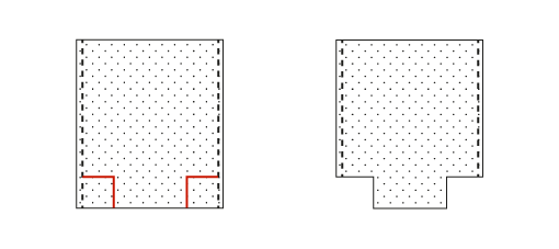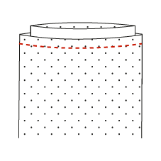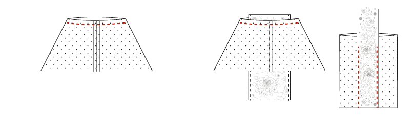 ![]() À chaque angle du fond, tracez un carré de 4 x 4 cm en partant des coutures de côté et du fond. • Découpez ces carrés. ![]() Partie sans ouate :